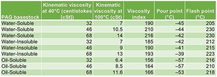 表1。聚烷基乙二醇(PAG)基础油的一般性质。资料来源:壳牌