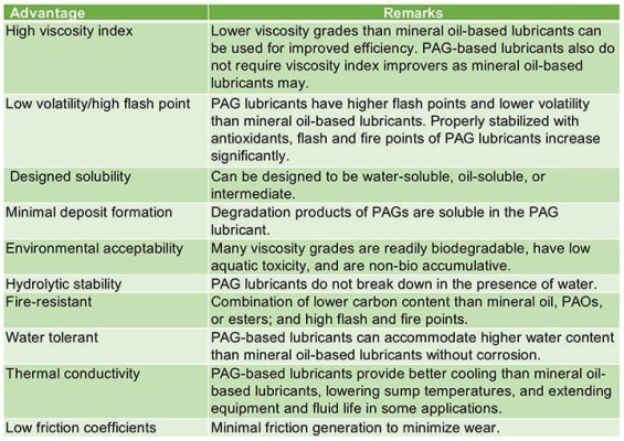 表2。PAG基润滑剂的性能优势。资料来源:壳牌
