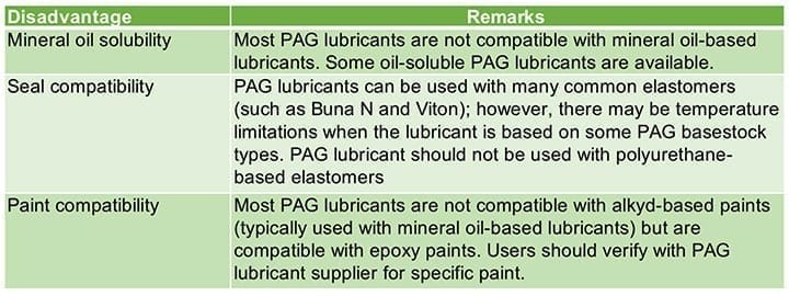 PAG基润滑剂的缺点