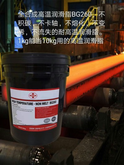 胶体高温润滑脂MetalubBG260 是一个专门定制的特殊高温轴承润滑脂,采用胶体润滑专利技术,具有在传统润滑脂所不能达到的高温度下,像“油脂一样”润滑。胶体高温润滑脂MetalubBG260由合成酯基础油配以无机非皂化混合稠化剂精制而成,同时含有高质量的石墨和二硫化钼固体润滑剂,为产品提供优秀的可靠润滑。胶体高温润滑脂MetalubBG260是长寿命高温胶体润滑脂,具有在高温下不干,不熔化,不滴,不流特性。独特的配方加特殊的生产工艺,使胶体高温润滑脂MetalubBG260呈现胶体和润滑脂两种状态并存, 胶体状使高温下不固化,不焦化,不炭化,长效油脂润滑,湿湿的,不干,大大延长加油周期,全面保护设备部件。胶体高温润滑脂BG260具有很低的摩擦系数,适合中高速高温润滑。