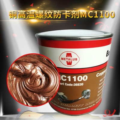铜螺纹防卡剂MC1100是一个金黄色高温润滑脂(防卡剂COPPER ANTI-SEIZE),是特别级的螺纹防卡脂(又叫高温防卡剂/螺纹脂/金牛油),含金属铜成份,用于在苛刻条件下,防止金属与金属的接触防卡,方便拆卸。铜螺纹防卡剂MC1100具有很好的热稳定性和机械稳定性能,含有卓越的拒水剂,很容易地黏附在金属表面,方便拆卸,降低扭矩。