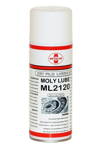 二硫化钼干膜润滑喷剂ML2120是一个多功能产品,由二硫化钼细小粒子和合成树脂黏结剂,配以快干溶剂调制而成。二硫化钼干膜润滑喷剂ML2120在液态时,可以用刷子和喷雾使用,一旦涂用,产品迅速固化,安全地在摩擦面上留下一层二硫化钼涂层油膜,干油膜具有很高的热稳定性和防脱落性,能够有效防卡,防擦伤。