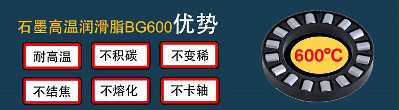 600度高温润滑脂BG600是一个用于润滑高温下工作的平面轴承,滚柱轴承和滚珠轴承的超高温润滑脂。石墨高温润滑脂BG600由无碳基础油和特种添加剂以及精选的固体润滑剂精制而成的无碳全合成高温润滑脂。石墨高温润滑脂BG600没有熔点,能承受高温和重负荷的苛刻工作环境。在温度上升(超过230 °C)时,合成基础油不留碳的蒸发掉,仅留下一层无碳干润滑膜,这个干润滑油膜自然的黏附在金属元件上,在许多苛刻条件下提供优秀的润滑保护。因此石墨高温润滑脂BG600在高温下具有不结焦,不积碳,不卡轴特性,是一个性能优秀的的高温润滑油脂。