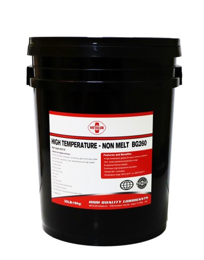 胶体高温润滑脂MetalubBG260 是一个专门定制的特殊高温轴承润滑脂,采用胶体润滑专利技术,具有在传统润滑脂所不能达到的高温度下,像“油脂一样”润滑。胶体高温润滑脂MetalubBG260由合成酯基础油配以无机非皂化混合稠化剂精制而成,同时含有高质量的石墨和二硫化钼固体润滑剂,为产品提供优秀的可靠润滑。胶体高温润滑脂MetalubBG260是长寿命高温胶体润滑脂,具有在高温下不干,不熔化,不滴,不流特性。独特的配方加特殊的生产工艺,使胶体高温润滑脂MetalubBG260呈现胶体和润滑脂两种状态并存, 胶体状使高温下不固化,不焦化,不炭化,长效油脂润滑,湿湿的,不干,大大延长加油周期,全面保护设备部件。胶体高温润滑脂BG260具有很低的摩擦系数,适合中高速高温润滑。