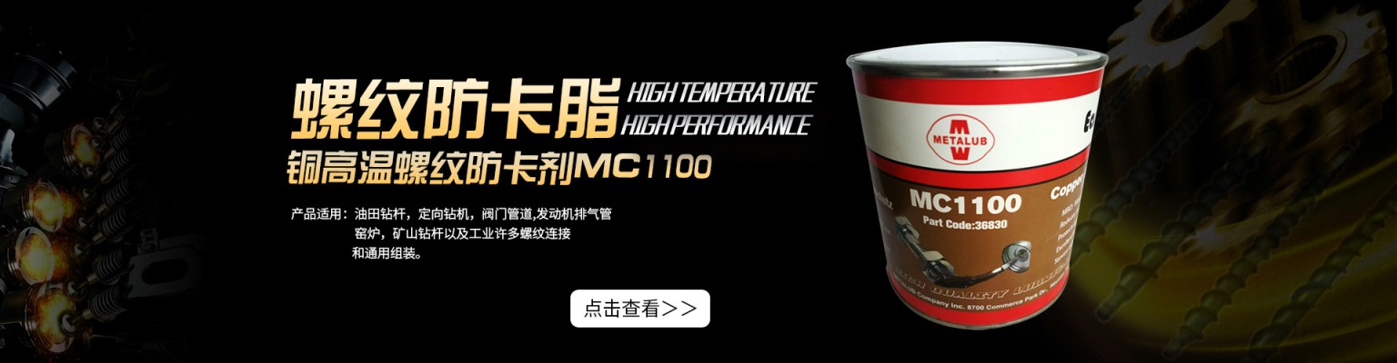 铜螺纹防卡剂MC1100是一个金黄色高温润滑脂(防卡剂COPPER ANTI-SEIZE),是特别级的螺纹防卡脂(又叫高温防卡剂/螺纹脂/金牛油),含金属铜成份,用于在苛刻条件下,防止金属与金属的接触防卡,方便拆卸。铜螺纹防卡剂MC1100具有很好的热稳定性和机械稳定性能,含有卓越的拒水剂,很容易地黏附在金属表面,方便拆卸,降低扭矩。